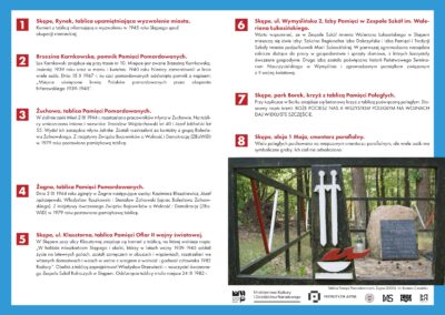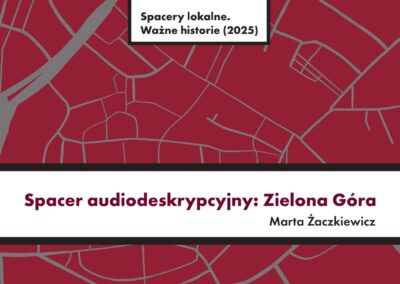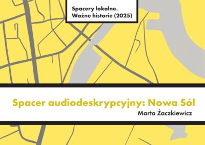 Razem z autorami spacerów zapraszamy do podróży w historię Żydów we Włocławku, drogą Miejsc Pamięci Narodowej i kapliczek w Skępem i okolicach, niezwykle urokliwych dworów i pałaców Ziemi Dobrzyńskiej i nieco dalej, do Lubawy i okolic, i jeszcze dalej, podobnie przyglądając się tożsamościowym historiom Zielonej Góry i Nowej Soli podczas spacerów audiodeskrypcyjnych.
